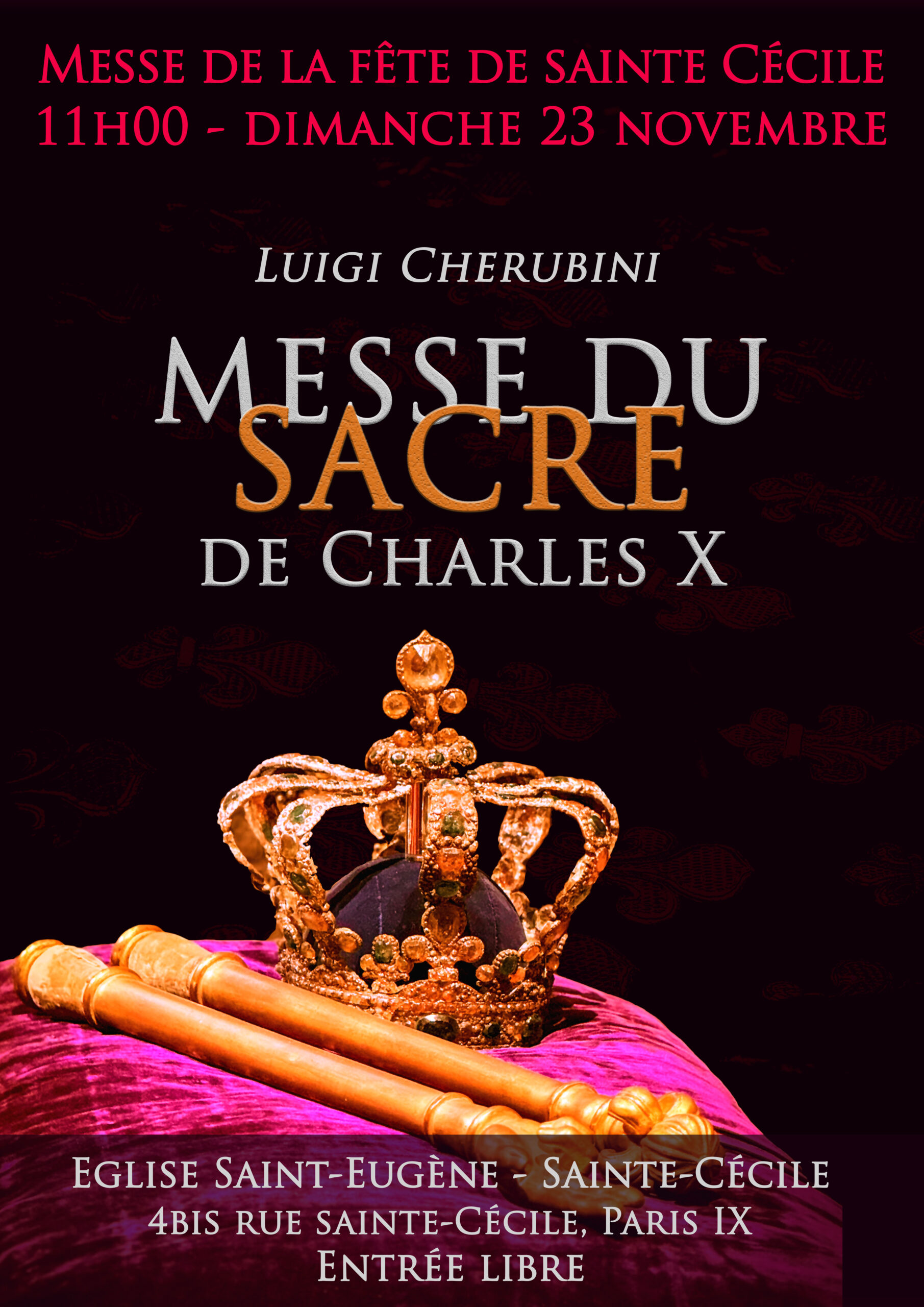 Le dimanche 23 novembre, vivez un moment spirituel exceptionnel : à l’occasion de la fête de la Sainte-Cécile, patronne des musiciens, la Schola Sainte-Cécile chantera la magnifique Messe du Sacre de Charles X, de Luigi Cherubini. Elle sera accompagnée d’un orchestre.